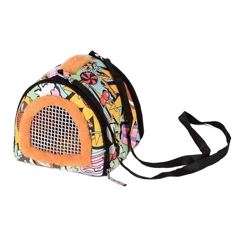 Bolsa de transporte de mascotas pequeña y grande de lujo con cierre de cremallera para gato perro viaje cuadrado de lados suaves con patrón impreso