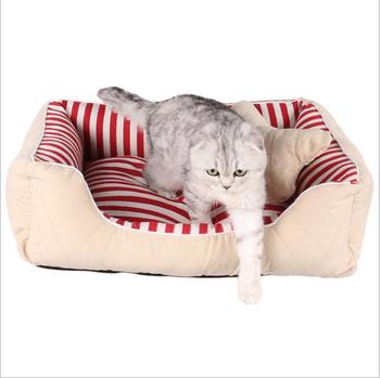 Venta al por mayor de lujo rectángulo de lino cama del animal doméstico con moderno estampado a cuadros cama suave para perros con cubierta extraíble para viajes