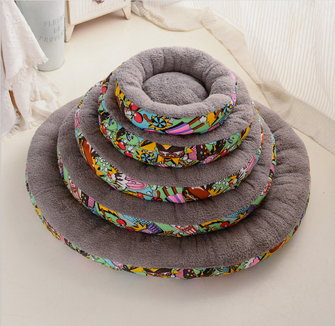 Venta al por mayor de peluche para mascotas cama cojín redondas grandes perro gato cama