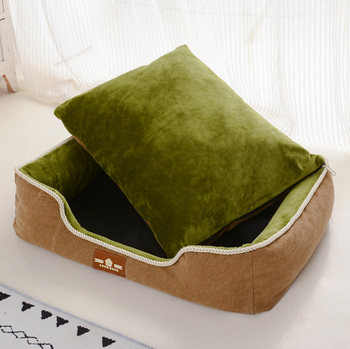 Venta al por mayor de lujo rectángulo de lino cama del animal doméstico con moderno estampado a cuadros cama suave para perros con cubierta extraíble para viajes